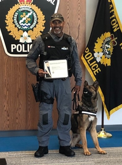 Cst. MacArthur joined the Guelph Police Service in 2008. In 2012 he joined the Canine Unit and was partnered with K9 General. General is trained in the detection of human scent, firearms and narcotics. Over the years the team has won numerous awards in relation to operational deployments; the most notable, in 2016 the team won Utility Team of the Year, beating out over 900 teams across North America.