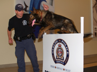 Major began his career as a general purpose service dog certified in tracking, area and building searches, evidence recovery, suspect apprehension, obedience and handler protection. Major was certified in Narcotics detection in 2007 and became the first operation Narcotics detection team for the Guelph Police Service. In 2008, Cst. McConnell was certified as a K9 Trainer in the areas of General Utility and Narcotics Detection by the National Association of Professional K9 Handlers.