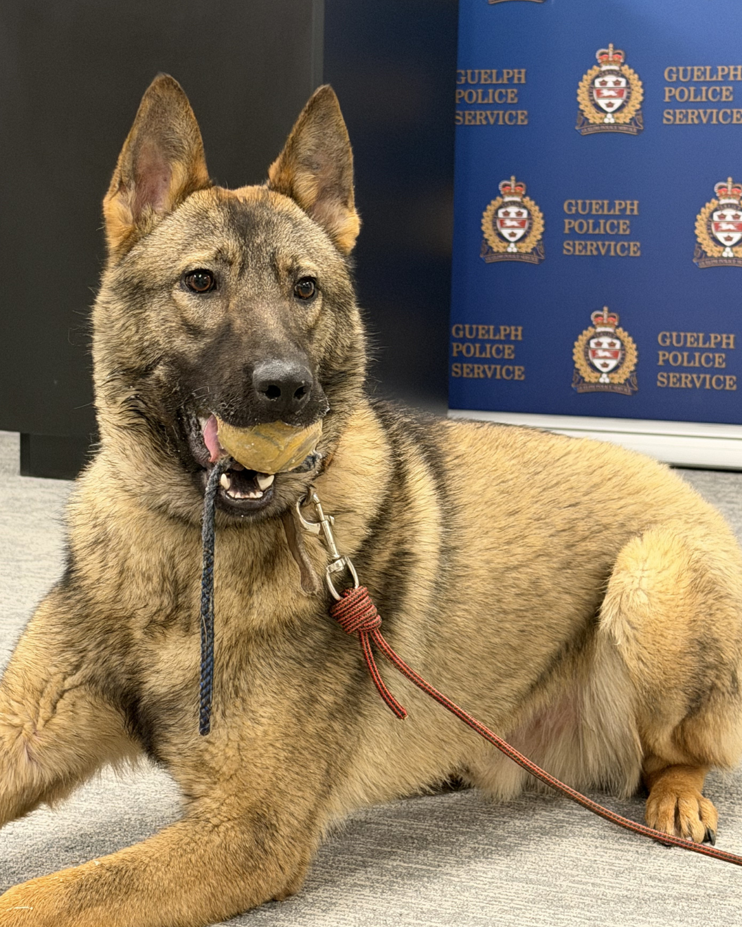 On April 9, 2026, the Guelph Police Service welcomed a new police service dog to the canine unit, a one-year-old Belgian Malinois/German Shepherd mix.