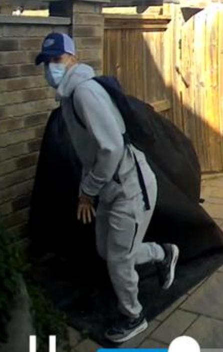 A suspect captured on security video was described as a white or Asian male, 25 to 35 years with a medium build and short hair. He was wearing a grey hoodie, grey sweatpants with black zipper on the pocket, a blue and white baseball cap, grey or black Nike running shoes, a black backpack and a blue medical mask.