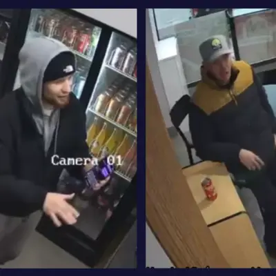 Approximately 1:40 a.m. August 13, 2025, police were dispatched to an alarm call at a business near Speedvale Avenue East and Stevenson Street North. Three men attended the business and one used a sledgehammer to smash a rear door and gain entry. More than $7,000 in product was stolen and damage was estimated at $1,000. The suspects were described as: